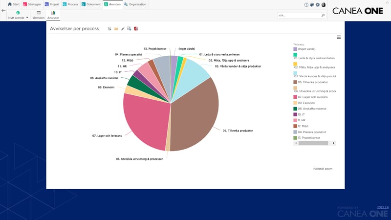 CANEA ONEs ärendehantering har i många år, och med goda framgångar, använts av våra kunder för hantering av kvalitetsärenden likt: avvikelser, ändringar, klagomål, förbättringsarbete, korrigerande åtgärder, förebyggande åtgärder, revisioner, leverantörs-utvärderingar, risker med mera. Med hjälp av dessa styrda och kontrollerade processer så skapas ökad effektivitet & kvalitetssäkring samt bättre processefterlevnad. Genom funktioner för uppföljning och statistik kan ex. avvikelser som defekter på produkter systematiskt analyseras och elimineras. Möjlighet att lösa grundorsakerna till problem och förebygga dessa för att säkerställa kvalitet och säkerhet i era processer och hos era produkter.