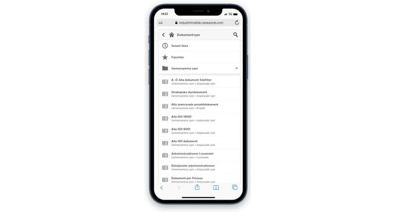 Förutom favoritprocessen kan du markera de dokument som är viktigast och/eller som du använder mest. Favoriterna är enkelt åtkomliga via gränssnittet och tar dig givetvis till senast gällande versioner.